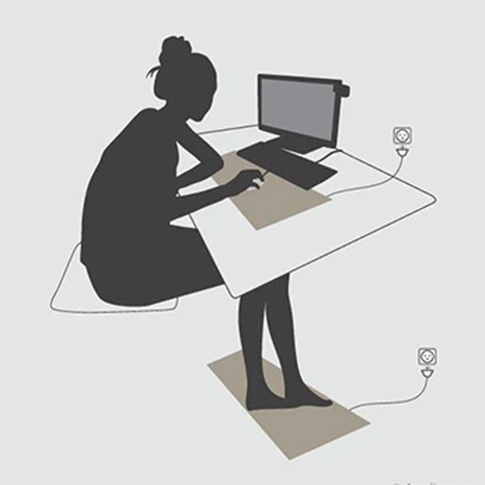 Deze aardingsmat is gemaakt van geleidend carbonleder en is ideaal voor gebruik bij computerwerk, lezen, handwerk of ontspanning. Je kunt de mat gebruiken als polssteun (deskmat of muismat), of er blootsvoets of met lichte sokken op zitten. Zo maak je eenvoudig contact met de aarde via het stopcontact van je woning.