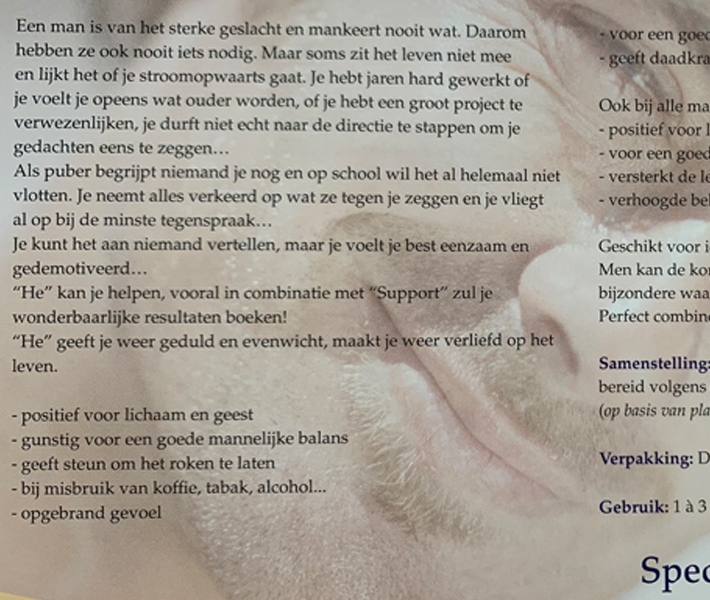Ondersteuning bij alle mannelijke klachten als burn-out, midlifecrisis, faalangst, puberteit..