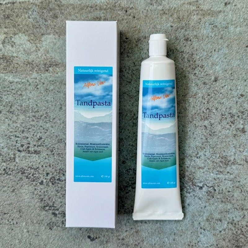 De tandpasta van Alfons Ven is een unieke combinatie van traditioneel vakmanschap en plantaardige zuiverheid. Deze natuurlijke tandpasta bevat uitsluitend ingrediënten uit het planten- en mineraalrijk en is vrij van fluoride, kunstmatige zoetstoffen en chemische toevoegingen. De frisse smaak en zachte textuur zorgen voor een aangename poetservaring, voor jong en oud.