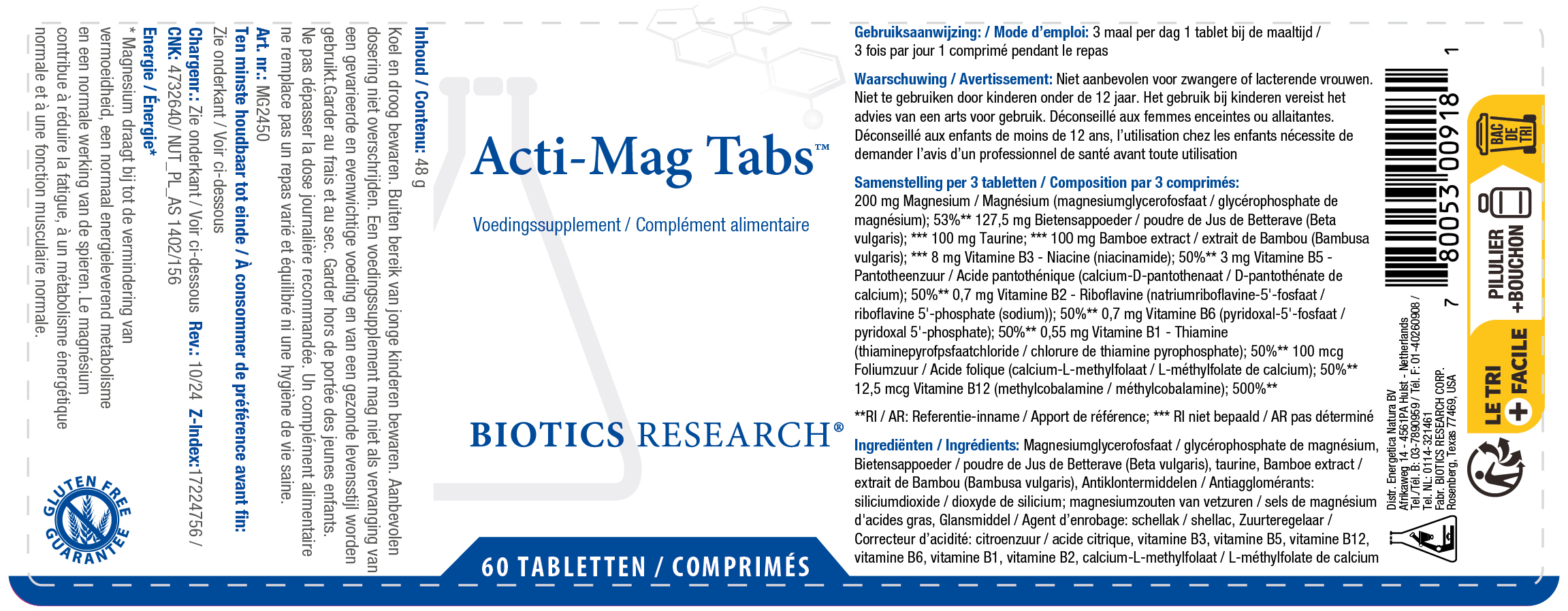 Biotics, Energetica NaturaBiotics Acti-Mag Neutrale smaak Magnesium