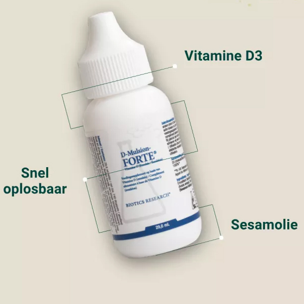 D-Mulsion Forte is een geëmulgeerde vitamine D3-formule in druppelvorm. Elke druppel bevat 50 µg vitamine D3 (cholecalciferol, actiVmulsion®) en is eenvoudig dagelijks te doseren.