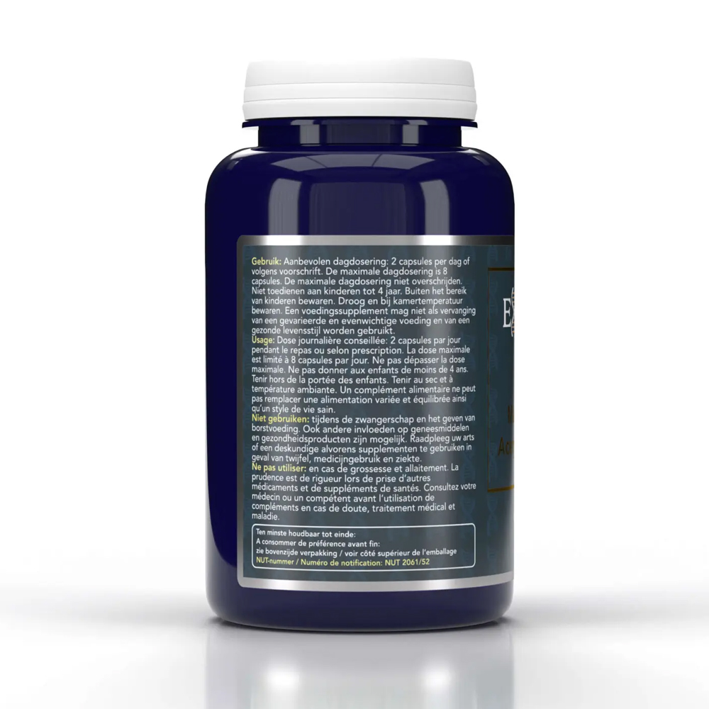 Aanbevolen dagdosering: 2 capsules per dag of volgens voorschrift. De maximale dagdosering is 8 capsules. De maximale dagdosering niet overschrijden. Niet toedienen aan kinderen tot 4 jaar. Buiten bereik van kinderen bewaren. Droog en bij kamertemperatuur bewaren. Een voedingssupplement mag niet als vervanging van een gevarieerde en evenwichtige voeding en van een gezonde levensstijl worden gebruikt. |
