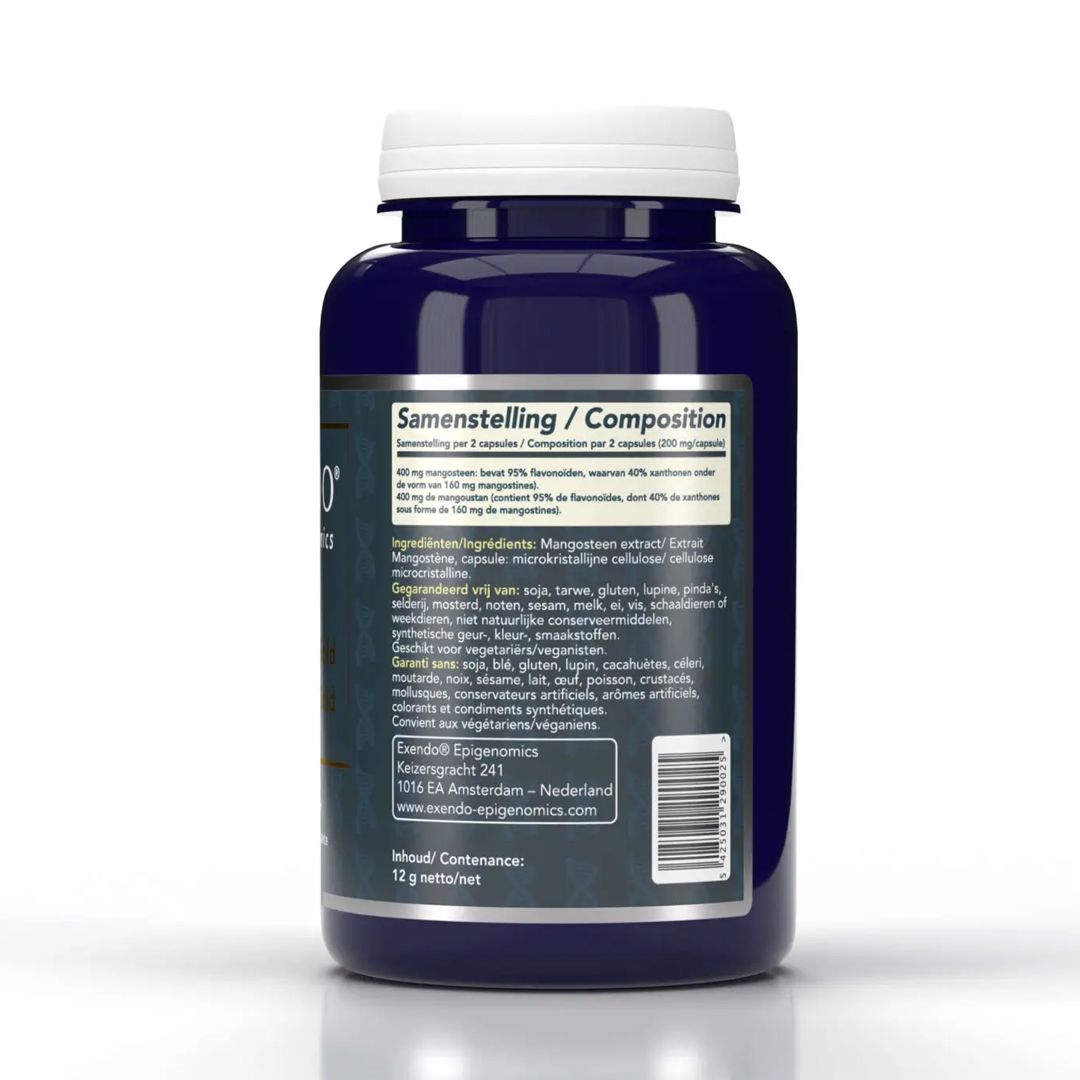 Mangosteen Gold van Exendo Epigenomics onderscheidt zich door de hoge concentratie aan actieve plantenstoffen. De formule bevat uitsluitend natuurlijk fruitextract van de mangosteen en geen vulstoffen of bindmiddelen die de opname kunnen beïnvloeden.