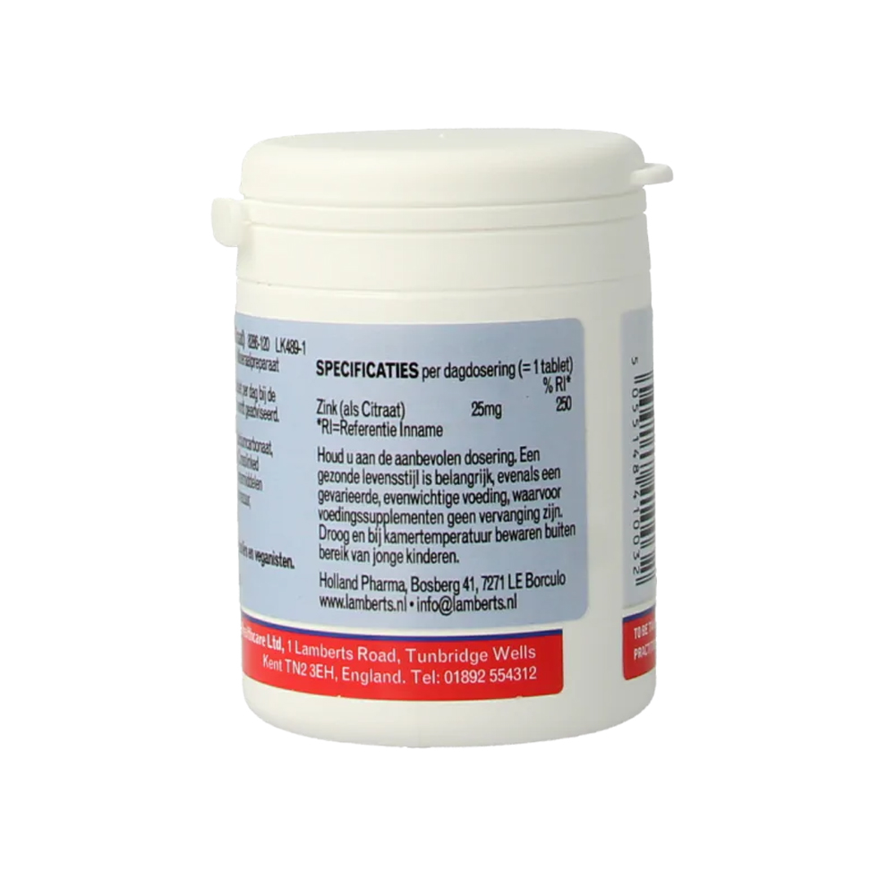 Calciumcarbonaat, Zinkcitraat, Cellulose, Crosslinked Cellulosegom, Antiklontermiddelen (Siliciumdioxide, Stearinezuur, Magnesiumstearaat).