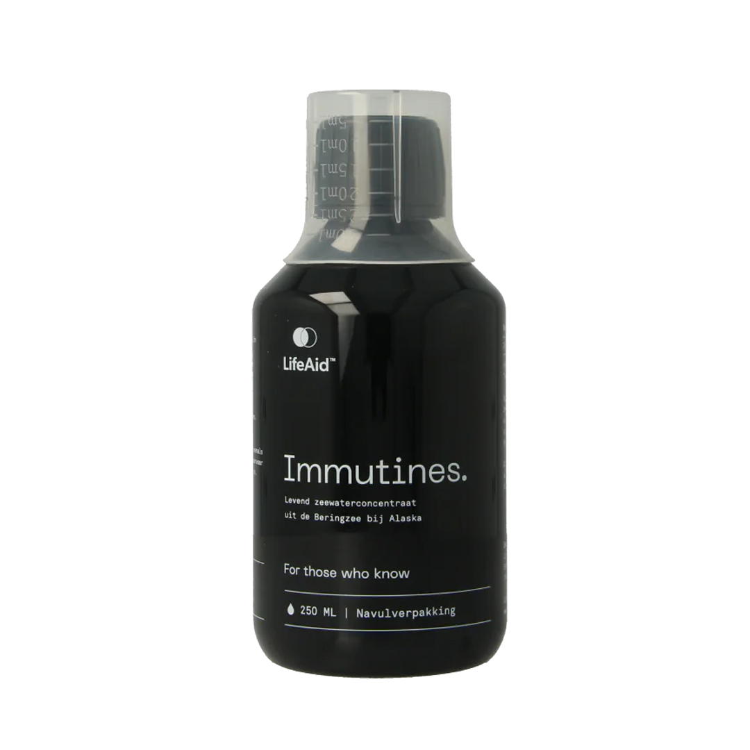 LifeAid Immutines grootverpakking is een hoogwaardig zeewaterconcentraat met het volledige spectrum aan mineralen, sporenelementen en probiotische microben uit de levende Beringzee in Alaska.