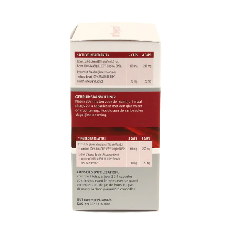 | Extract uit druiven (Vitis vinifera L.) – pit, bevat 100% MASQUELIER’s Original OPC’s | 100 mg | 200 mg |