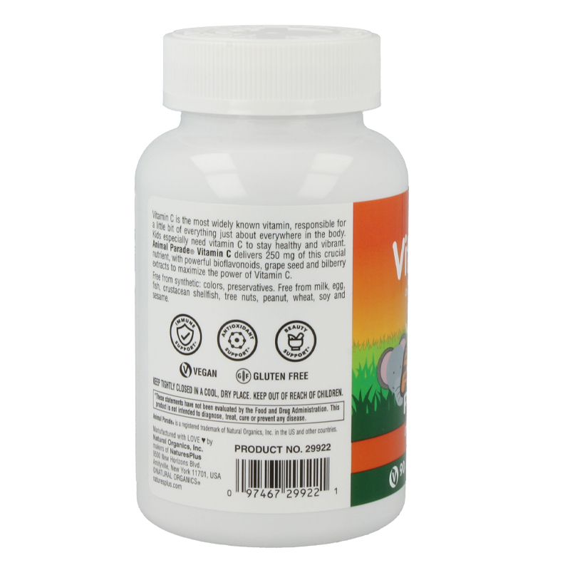 Animal Parade® Vitamin C van Natures Plus is een suikervrije vitamine C in de vorm van smakelijke kauwtabletten, speciaal ontwikkeld voor kinderen. Deze tabletten hebben een aangename sinaasappelsmaak en zijn eenvoudig in gebruik. Vitamine C is een bekende antioxidant en wordt vaak gekozen als aanvulling op de dagelijkse voeding.