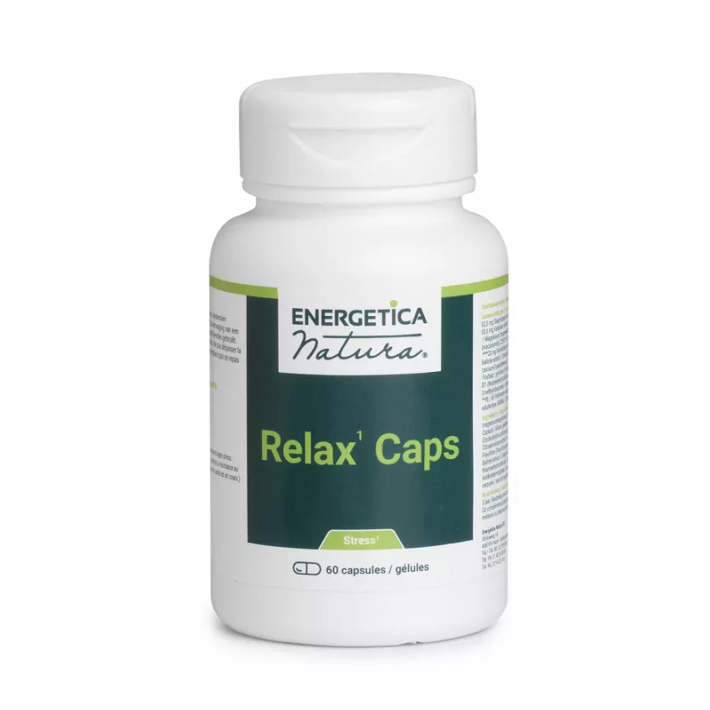 Relax Caps van Energetica Natura is een plantaardig voedingssupplement met magnesium (bisglycinaat), B-vitaminen en zorgvuldig geselecteerde kruidenextracten. De formule is ontwikkeld voor mensen die hun dagelijkse balans en ontspanningsmomenten willen ondersteunen binnen een actieve levensstijl. Relax Caps is vrij van synthetische stoffen en veelvoorkomende allergenen.