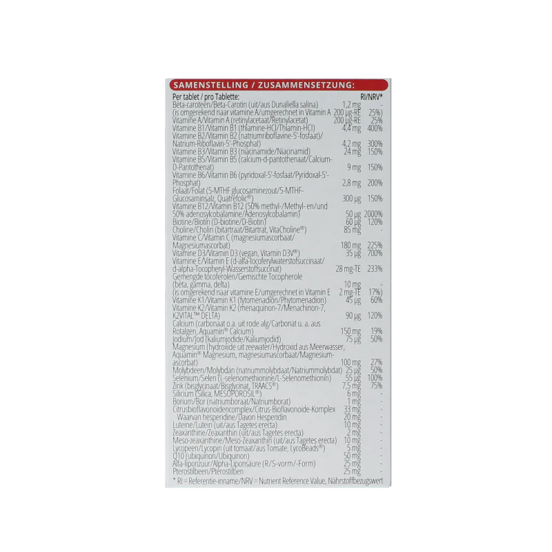 De formule bevat een uitgebalanceerde combinatie van vitaminen, mineralen en aanvullende stoffen, waaronder: