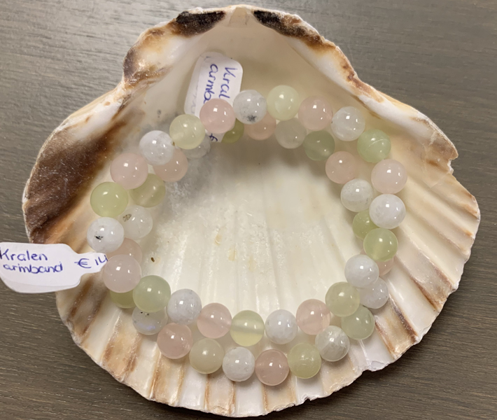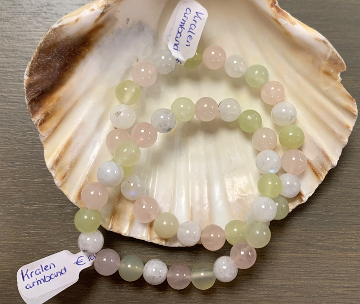 Kralenarmband Vruchtbaarheid, met Maansteen wit, Rozekwarts en Jade.